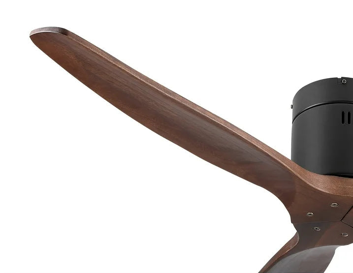 Fabricado con materiales de alta calidad, este ventilador de techo combina elegancia y durabilidad. Sus aspas están hechas de madera y su estructura de metal resistente garantiza un funcionamiento duradero tanto en interiores como exteriores.