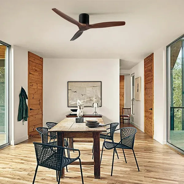 Diseñado con líneas sobrias y acabados de alta calidad, el ventilador Aeris combina potencia y elegancia. Su motor de 40W y sus aspas de 132cm de diámetro aseguran una óptima circulación de aire, mientras que sus seis velocidades, controlables mediante control remoto, permiten ajustar la intensidad a cada momento del día. De instalación sencilla y funcionamiento prácticamente silencioso.